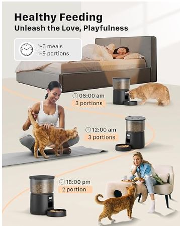 BEMOONY Automatic Cat Feeder, Cat Food Dispenser with 1-6 Meals, Customized Feeding Schedule for Cats & Dogs, BLACK